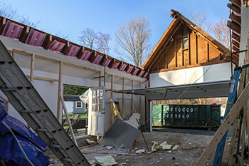 An addition was constructed over the entire garage and the main house. The small dormer was removed and replaced with a new dormer that extends across the full width of the structure from one side to the other.