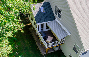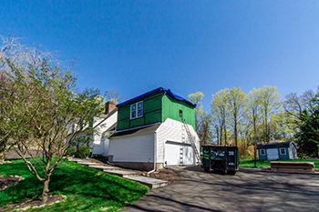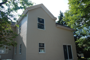 An addition was constructed over the entire garage and the main house. The small dormer was removed and replaced with a new dormer that extends across the full width of the structure from one side to the other.